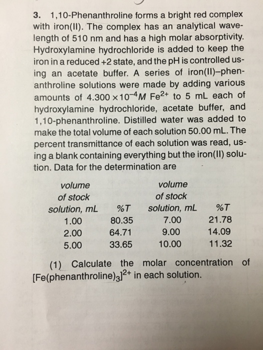 Solved Calculate The Molar Concentration Of Fe Chegg Com